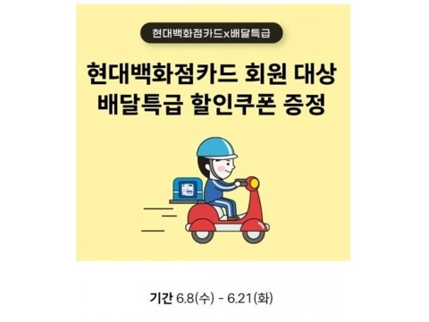 이번 이벤트는 경기도 소재 현대백화점 모바일 카드 회원 중 행사 기간 내에 배달특급에 신규 가입한 회원에게 총 1만3,000원 상당의 할인 쿠폰을 지급하는 것이 골자다(1인 1회 한정).