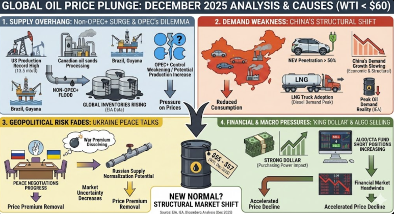 단순한 일시적 조정이 아닌, 석유 시장의 구조적 패러다임이 바뀌고 있다는 분석이 지배적입니다. 현재 유가 하락을 이끄는 '진짜 원인' 3가지를 팩트 위주로 분석합니다.