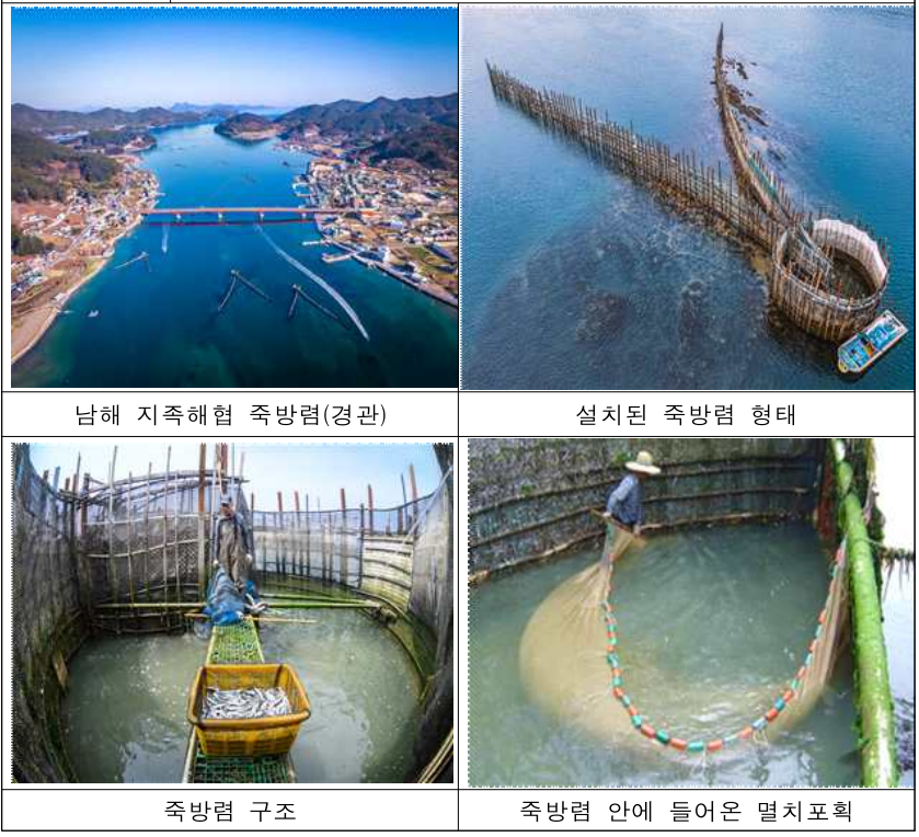 해양수산부는 경남 남해군 지족해협 일대에서 전승되고 있는 전통어업인 ‘죽방렴어업’이 7월 9일, 유엔 세계식량농업기구(FAO)가 지정하는 세계중요농업유산(GIAHS)으로 새롭게 등재되었다고 발표했다.